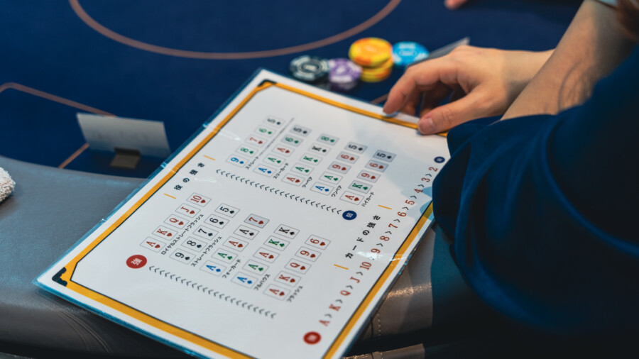 BellBird Poker 新橋店ではプレイの流れや、カードや役の強さを解説するカードが配布されているので、初心者の方でも安心!