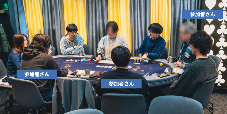 Iさん(Webエンジニア)からは「ポーカーの説明が丁寧で助かりました」との声も。初心者の方にも安心して楽しんでいただける場づくりを心がけています。