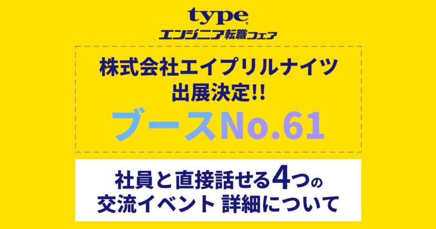 この度、株式会社エイプリルナイツは、typeエンジニア転職フェアへの出展が決定しました🎉